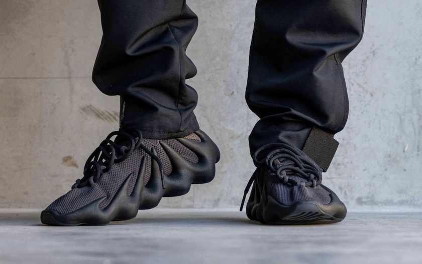 近日全黑配色 Yeezy 450 “Dark Slate” 已经在国外正式发售,发售价格为 200 美元。网络上也曝光了更多的上脚实拍图。