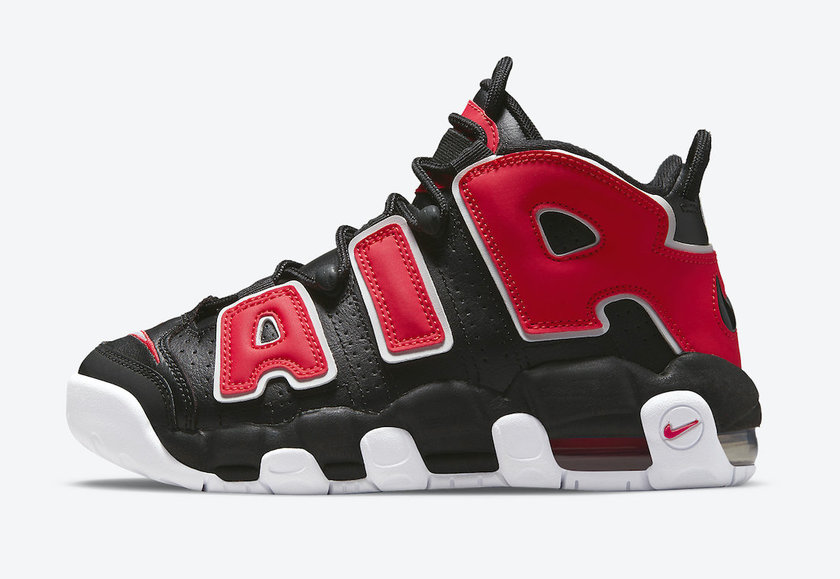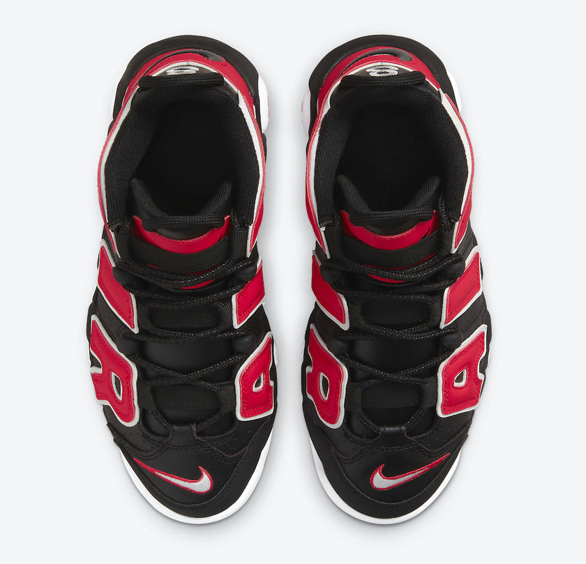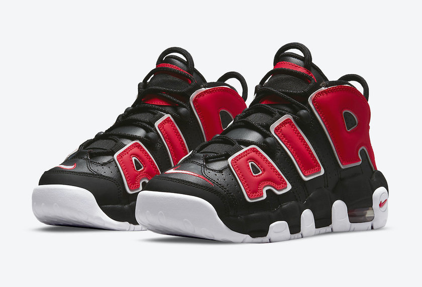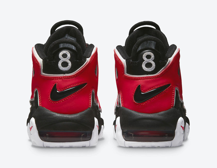 最近一款全新黑红配色 Air More Uptempo 曝光。「大 AIR」 的最大亮点自然是侧身标志性 AIR 字样,这次红色醒目的 AIR 字体配合黑色皮革的鞋面,以及后跟的 8 号字样,让人想起曾经的奥运会皮蓬 PE 版本。