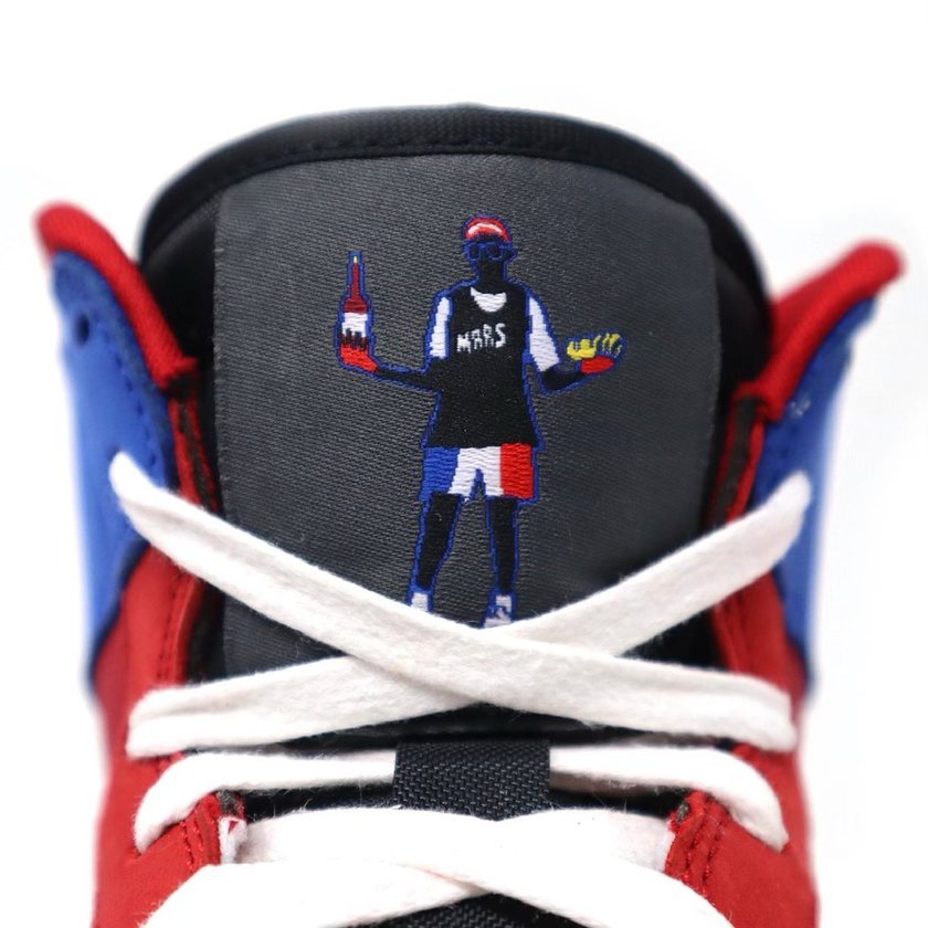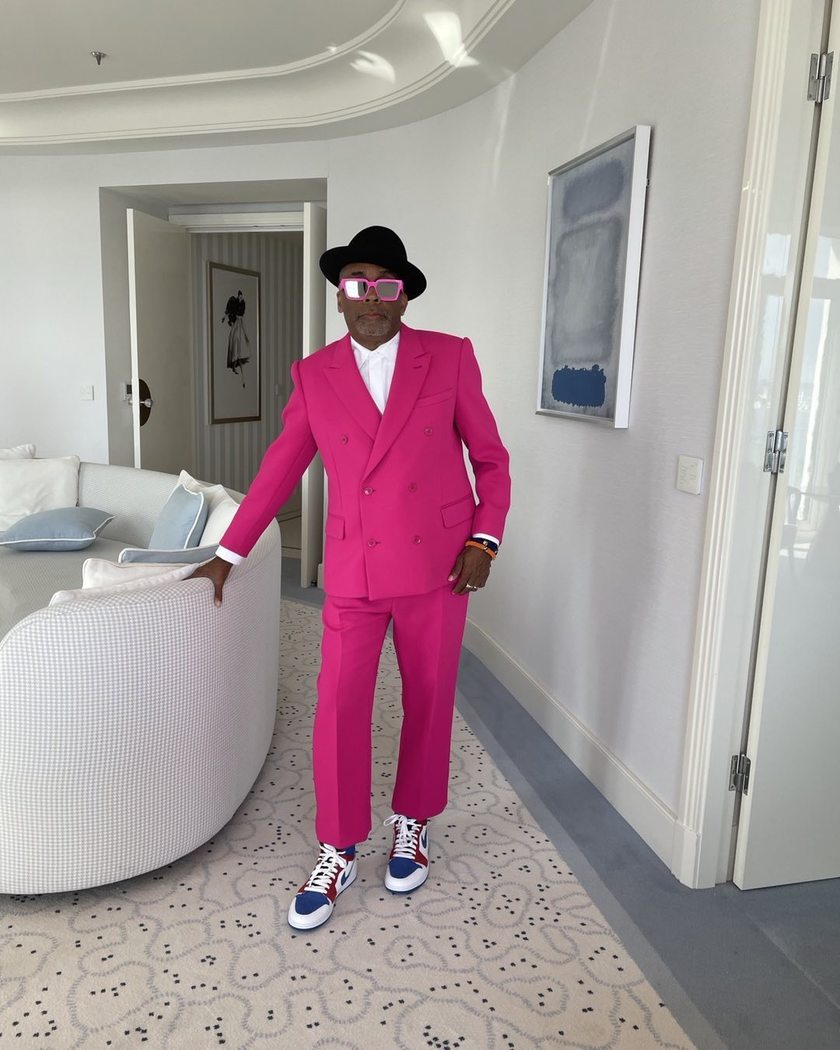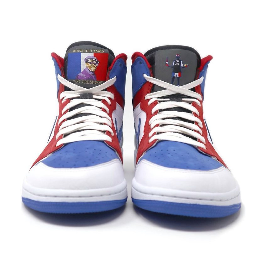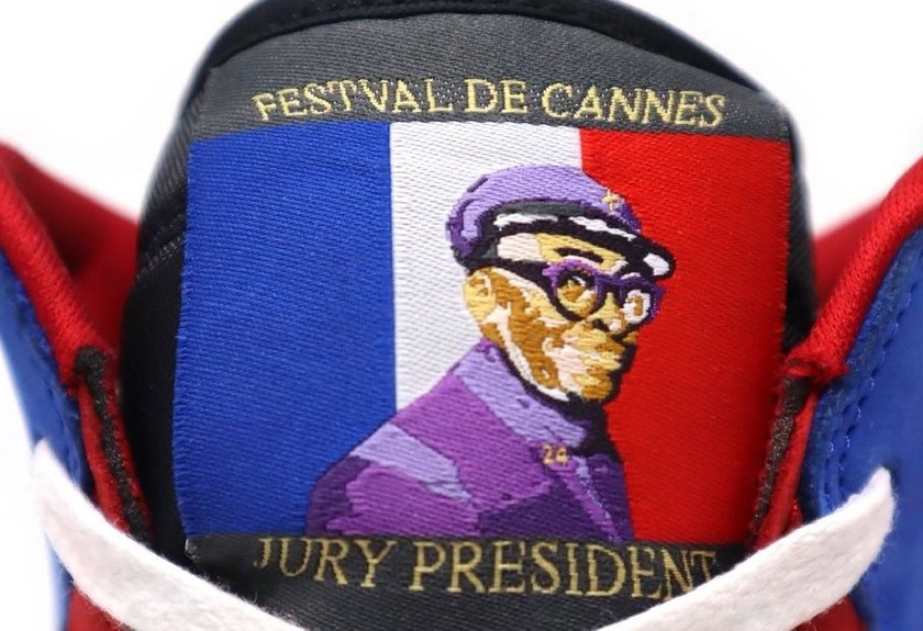 最近参加第 74 届戛纳国际电影节的知名导演斯派克·李时上脚了一双特殊定制的 Air Jordan 1。整双鞋由传奇设计师 Tinker Hatfield 亲自操刀,用法国国旗的红白蓝三色搭配鞋身,全身多处细节体现出多个斯派克·李的个人元素。最大的亮点在于右脚鞋舌上斯派克·李半身照图案的领口上还清晰印着的 “24” 字样,毫无疑问实在致敬科比,当年在麦迪逊花园科比投篮假动作接反转身跳投把作为尼克斯队死忠的斯派克·李打乐的画面历历在目。