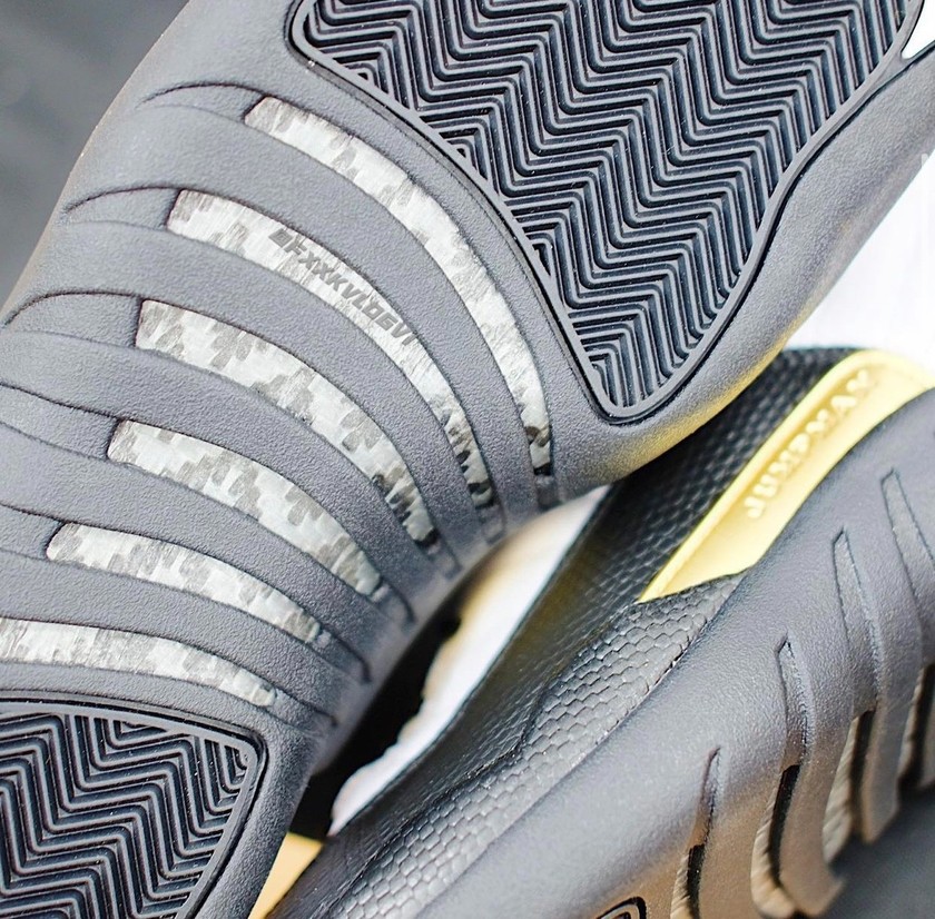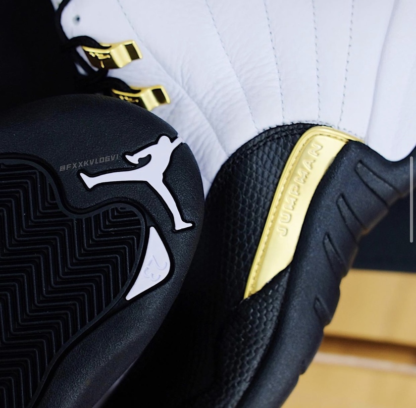 之前报道过一双酷似金扣的 Air Jordan 12 “Royalty”即将发售,近日 AJ 公布了该款鞋的具体发售信息,同时曝光了更多的实物图。整个鞋身使用黑白搭配皮革组成,与金扣不同的地方在鞋帮处和鞋身侧面的 TPU ,均采用金色点缀。