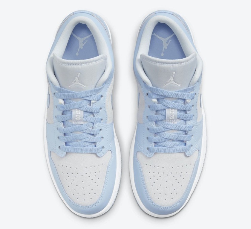 最近 Nike 公布了一组全新 Air Jordan 1 Low 大学蓝配色的官图!整双鞋以浅灰和蓝色为基础,只有中底采用白色搭配,视觉效果十分清爽。
