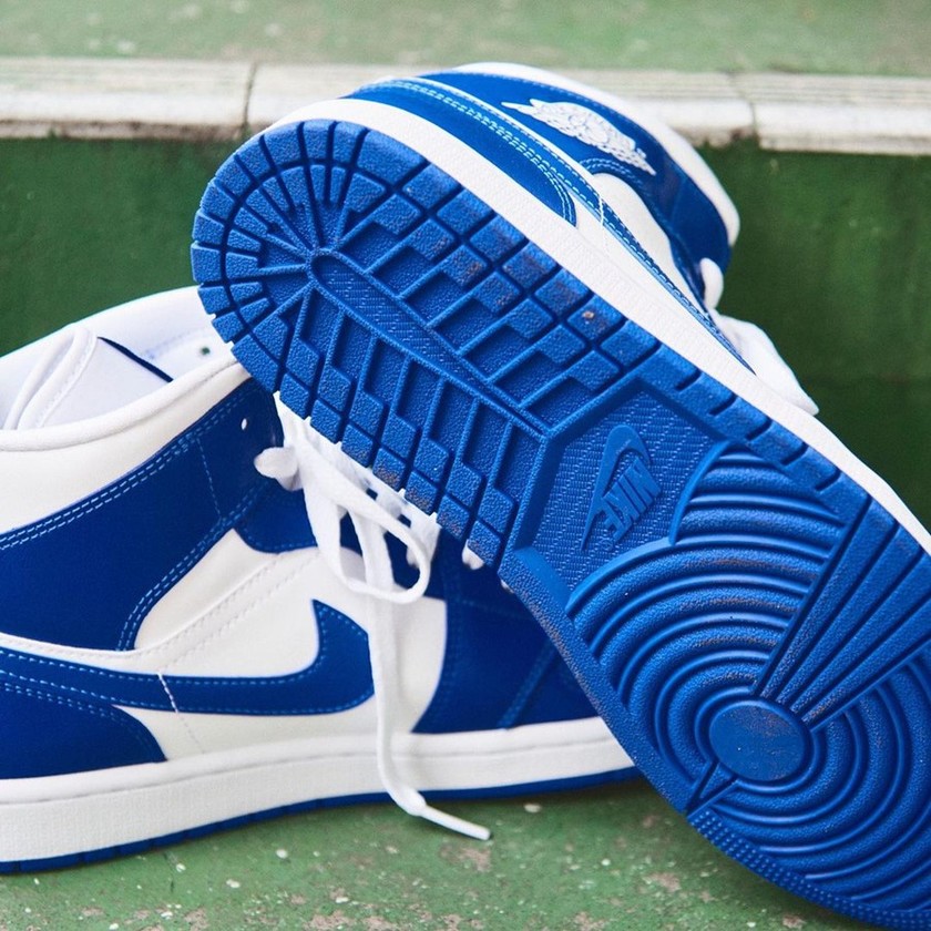 最近一款全新配色的 Air Jordan 1 Mid 在网络上曝光了实物图。整个鞋身采用蓝白双为基础,视觉效果简洁时尚。