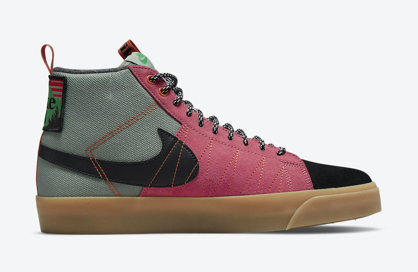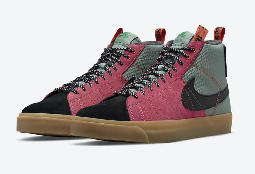 最近 Nike 公布了一款以 Blazer Mid 为基础打造的全新户外风格鞋款。整个鞋面由黑、粉、绿色拼接组合,视觉效果十分出众。细节上鞋侧有外露的橙色缝线,内衬使用羊毛材质,鞋提拉环也采用橙色设计。据悉这双全新的 Nike SB Blazer Mid Premium “Acclimate Pack” 会在今年 11 月正式发售,发售价格 110 美元。