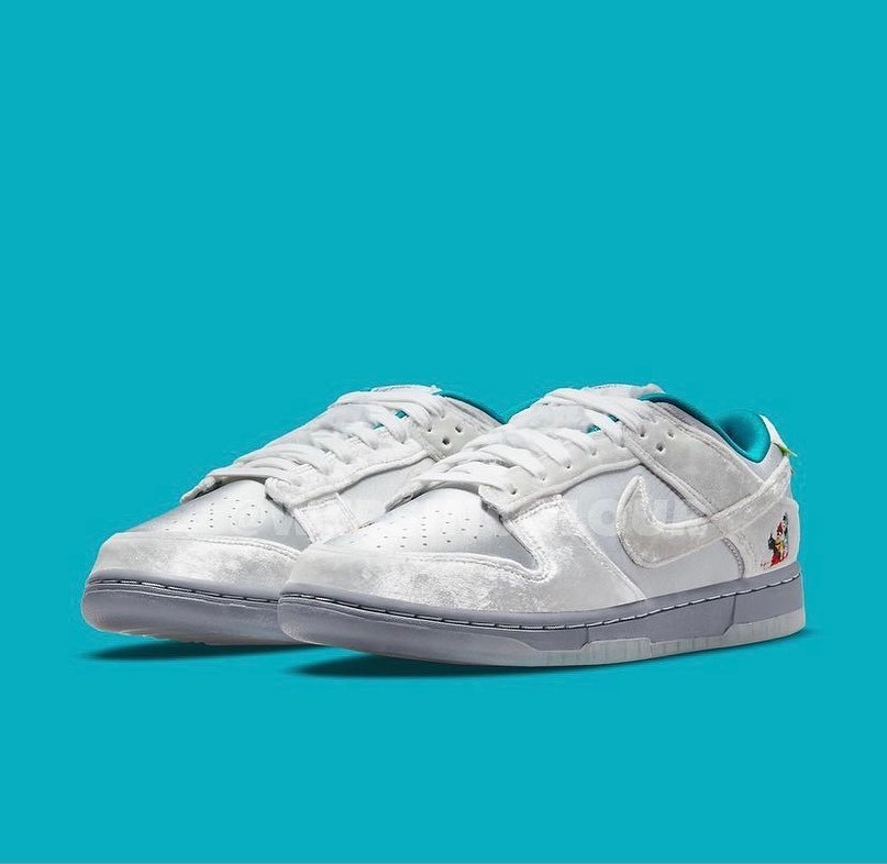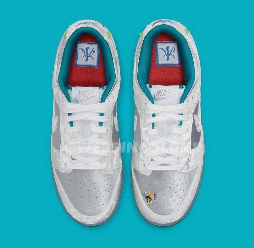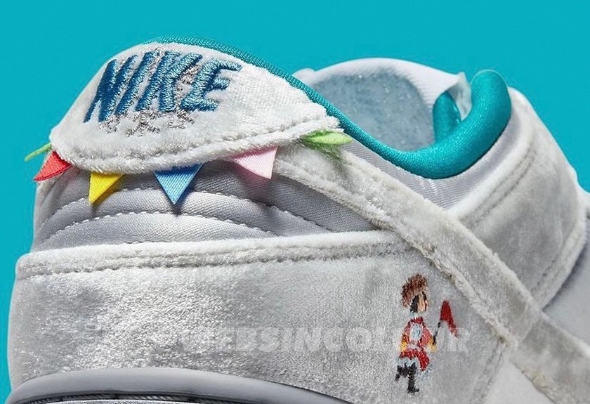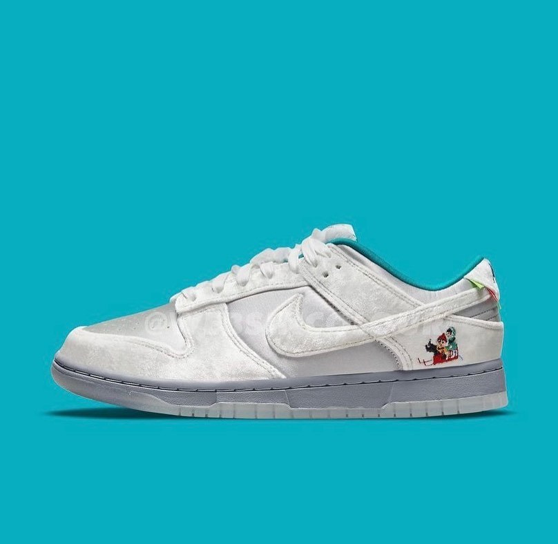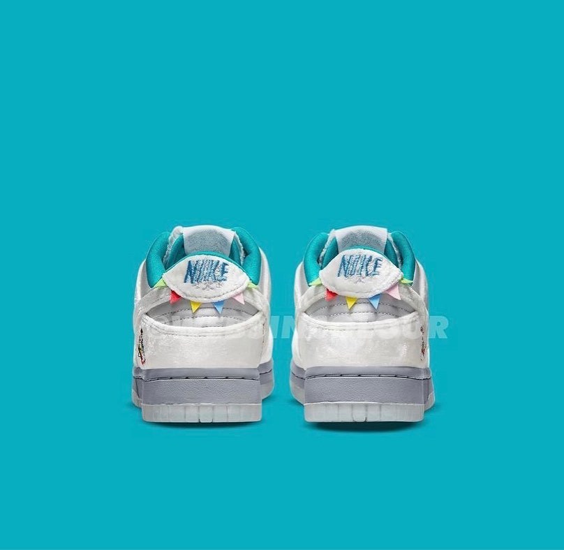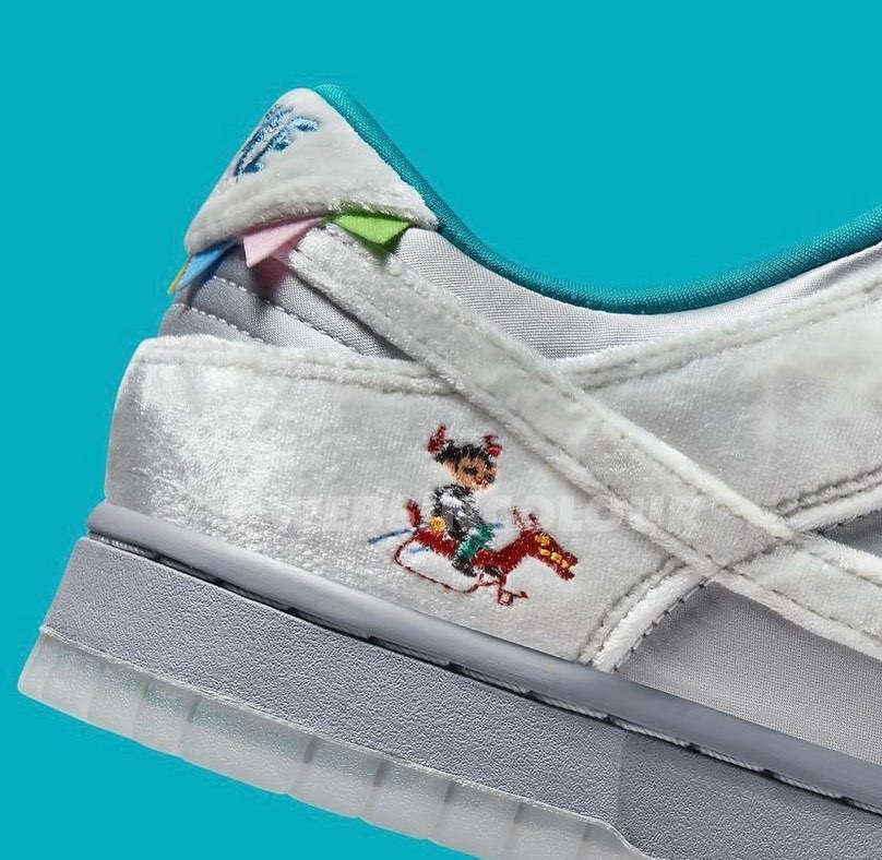 最近一双全新配色的 Nike Dunk Low 在网络上首次曝光了实物图,整双鞋以的白灰色为主调,鞋面材质十分丰富,由丝绒、绸面甚至人造兔毛搭配组成,鞋头和后跟部位都绣有可爱的卡通图案,鞋垫上还缝有令人惊喜的汉字「冰」,细节满满。目前这双鞋还没有公布具体发售信息。