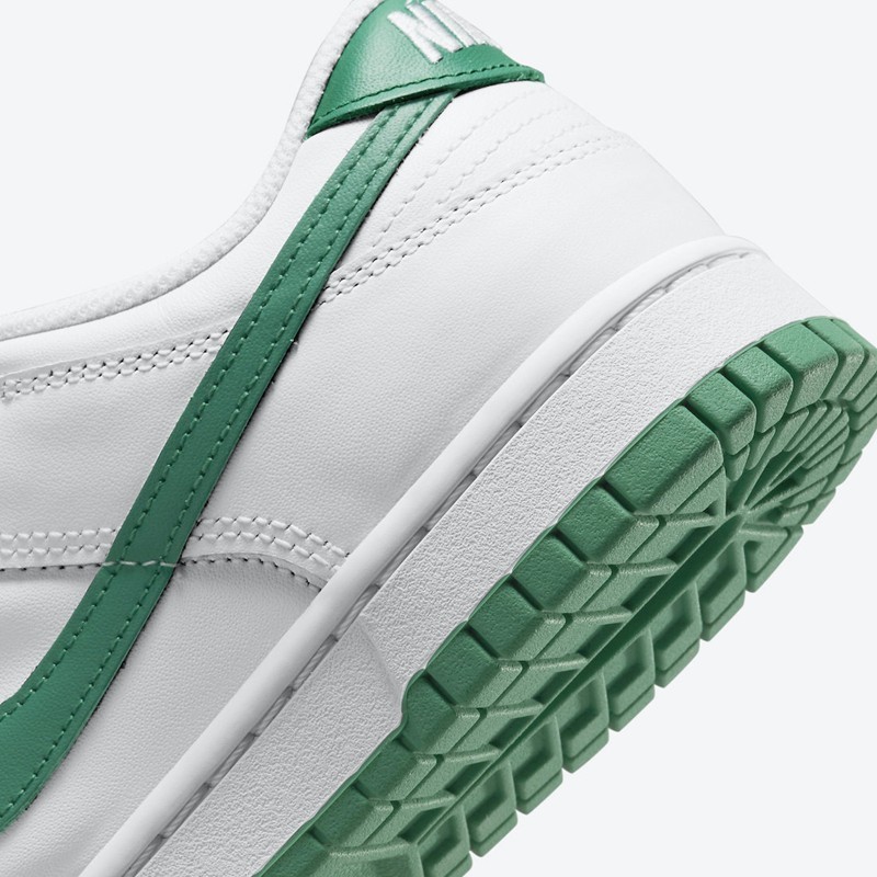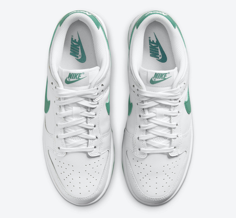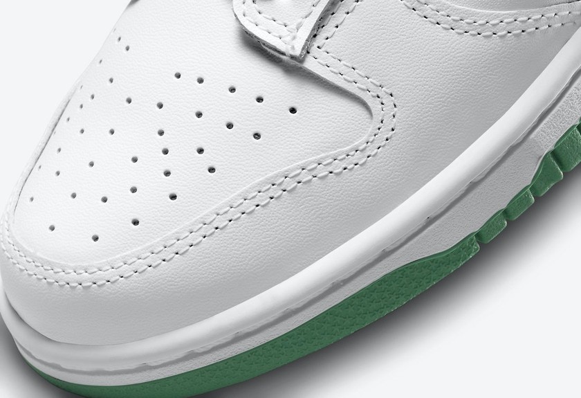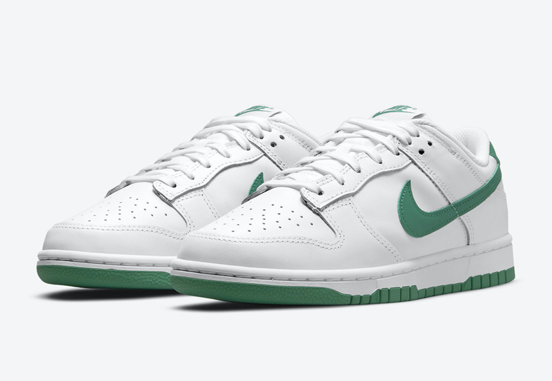 最近一双全新配色的 Dunk Low 公布了官图。整双鞋采用通体纯白色为主调,搭配 Swoosh、后跟以及鞋底的绿色。白绿相间的整体配色与 NBA 球队波士顿凯尔特人队的主色颇为相似。据悉这双全新配色的 Nike Dunk Low 会在近期正式发售,发售价格为 100 美元。