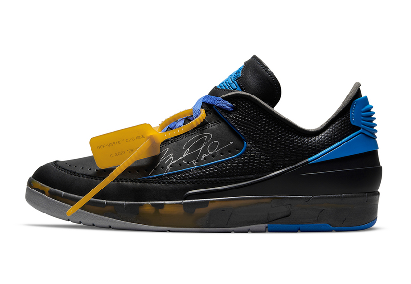 最近 OFF-WHITE x Air Jordan 2 Low 终于曝光了官图。整双鞋以黑蓝搭配为主色调,鞋身遍布细节,包括旧化的中底、外侧面印有的 Michael Jordan 签名,内侧面印有的经典 OFF-WHITE 联名字样及黄色防调包扣等,视觉效果结构风十足。据悉这双全新的 OFF-WHITE x Air Jordan 2 Low 会在今年 11 月 12 日正式发售,发售价格为 250 美元。