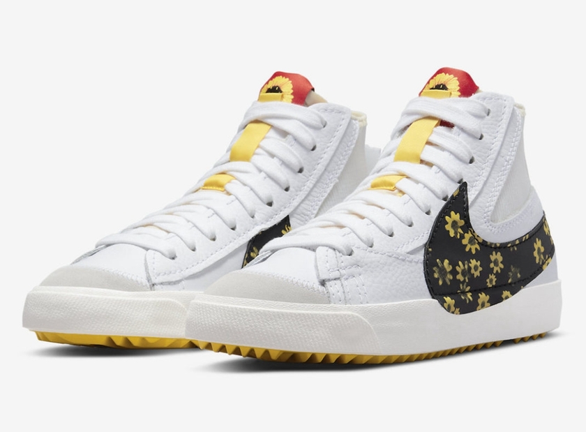 最近一双全新配色的 Nike Blazer Mid ’77 Jumbo“Floral” 公布了官图。鞋面使用黑、白、黄作为主色,简约时尚,海绵鞋舌印有向日葵图案,个性十足。据悉这双全新的 Nike Blazer Mid ’77 Jumbo“Floral” 会在近期正式发售,发售价格为 110 美元。