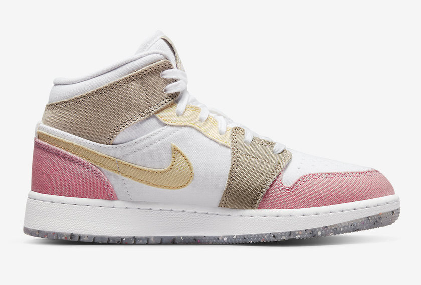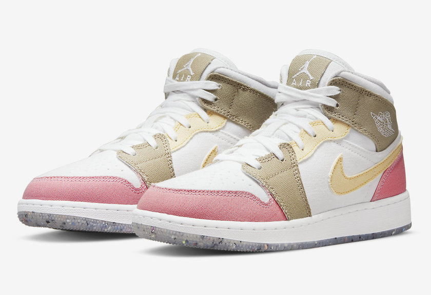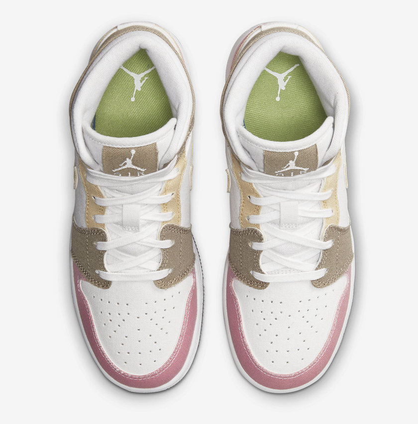 最近一款全新配色的 Air Jordan 1 Mid 公布了官图。整双鞋采用环保帆布打造,以白色为基础,搭配粉、棕、黄色的框架,视觉效果十分出众。据悉这双全新的 Air Jordan 1 Mid GS 会在近期正式发售,发售价格为 85 美元。