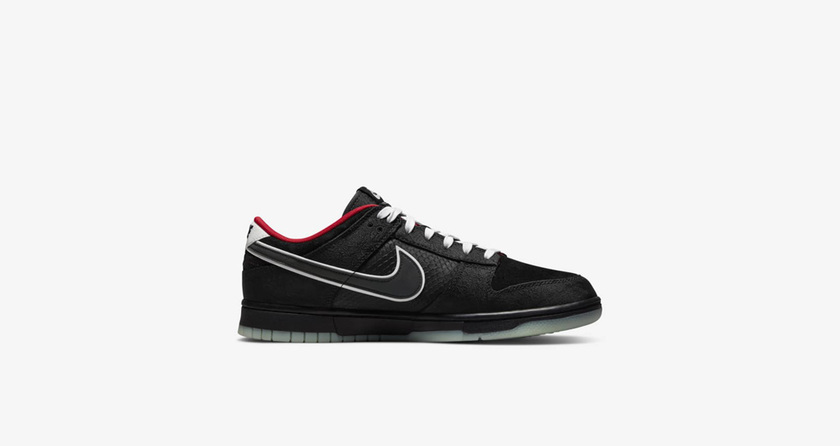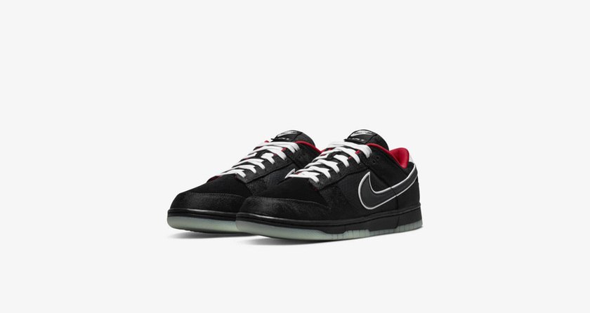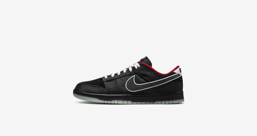 最近 Nike 为 LPL 联赛推出的专属配色 Dunk Low 终于正式发售了。黑色麂皮的鞋面搭配丝绸材质的框架以及红色的内衬,与夺冠队伍 EDG 的队服配色十分接近,视觉效果稳重时尚。发光材质的 Swoosh Logo 是该款鞋在黑暗环境下也颇有辨识度。