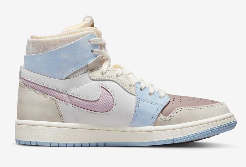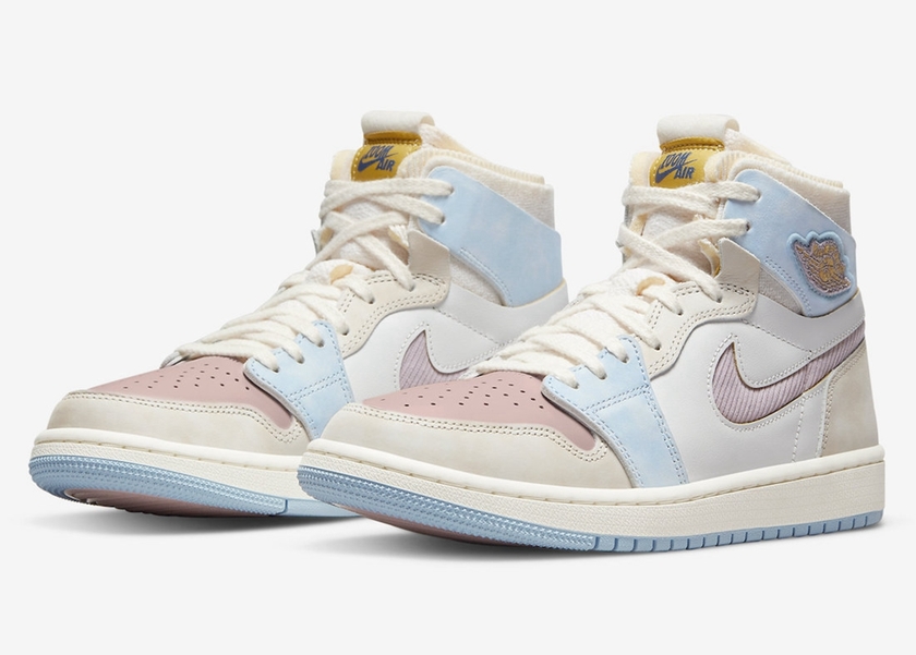 最近一款全新配色的 Air Jordan 1 Zoom CMFT 曝光了官图。鞋面采用各种粉色和蓝色、白色拼接而成,搭配镂空的 Swoosh Logo 、外露的鞋帮填充海绵,解构风十足。中底搭载 Zoom 气垫保证了缓震性和舒适性。据悉这双全新配色的 Air Jordan 1 Zoom CMFT 会在 2022 年正式发售,发售价格为 140 美元。