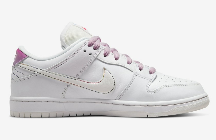 最近一双全新配色的 Nike SB Dunk Low “Be True” 公布了官图。鞋面以白色皮革材质为基础,搭配鞋舌标签及鞋带的标志性彩虹色点缀,视觉效果十分出众。最大的亮点在此鞋面同时兼顾了刮刮乐 + 光感变色的玩法,乐趣十足。据悉这双全新的 Nike SB Dunk Low “Be True” 会在 6 月 22 日正式发售,发售价格为 115 美元。