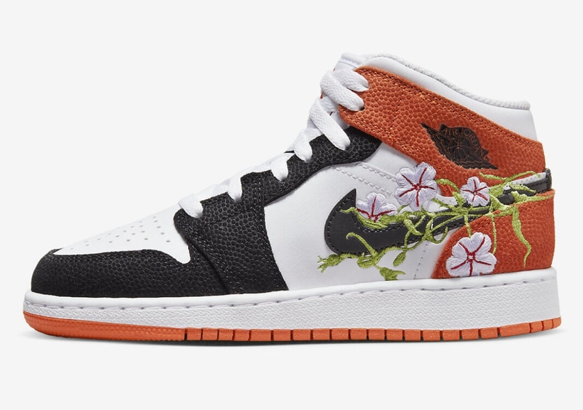 最近一双酷似「扣碎」配色的 Air Jordan 1 Mid 公布了官图。整体采用经典的黑、白、橙拼接组成,最大的亮点在鞋面后侧大面积的刺绣花朵,视觉效果十分出众。据悉这双全新的 Air Jordan 1 Mid GS 会在今年年内正式发售,具体发售信息目前未知。