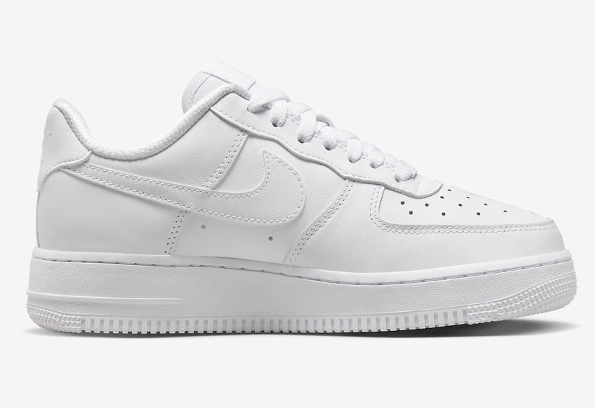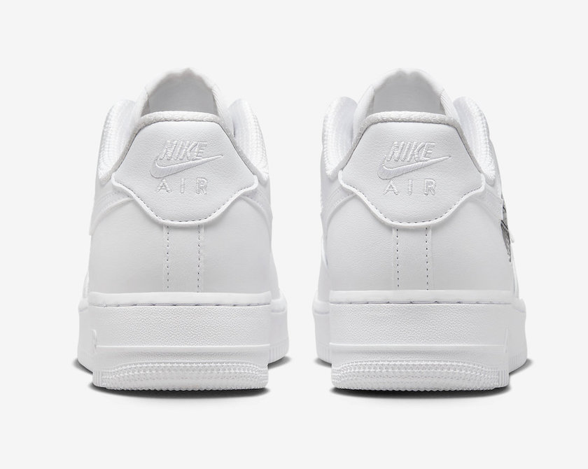 最近一双以经典纯白 Air Force 1 为蓝本设计的新款球鞋公布了官图。鞋款在前掌外侧裁减掉部分鞋面,改为以蛇纹皮革填充,鞋身中部直接挖空了一块,仅有内层的蓝色 Swoosh 部件相连。视觉效果十分出众。据悉这双全新造型的 Air Force 1 会在近期正式发售。