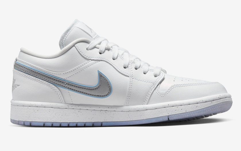 最近一款全新配色的低帮 Air Jordan 1 公布了官图。整双鞋以白色皮革为主体,搭配发光材质的 Swoosh 及后跟,炫彩珠光的外底,视觉效果十分出众。据悉这双全新配色的 Air Jordan 1 Low “Dare To Fly”将于近期正式发售,发售价格为 110 美元。