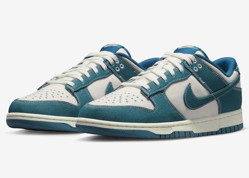 最近一双全新配色的 Nike Dunk Low “Industrial Blue”公布了官图。鞋面采用大面积丹宁材质覆盖,配色方面以湖水绿色装扮,细节方面鞋面经典圆形透气孔改为刺子绣形式呈现,后跟取消了 Nike Logo 字样,同样点缀精致的刺绣图案,视觉效果十分出众。据悉这双全新的 Nike Dunk Low “Industrial Blue” 会在 2022 年正式发售,发售价格为 120 美元。