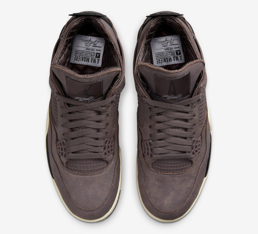 最近一双全新的 A Ma Maniére x Air Jordan 4 公布了官图。整双鞋的鞋面以麂皮材质覆盖,色调上采用酒红色右脚鞋舌是飞人 Logo,另一只则是 A Ma Maniére 缩写 A,后跟分别印有 “It’s not about the shoes”,“It’s about where you’re going” ,彰显联名身份。随鞋附赠金属吊牌,颇具收藏价值。据悉这双全新的 A Ma Maniére x Air Jordan 4 “Violet Ore” 会在今年 11 月 23 日正式发售,发售价格为 225 美元。