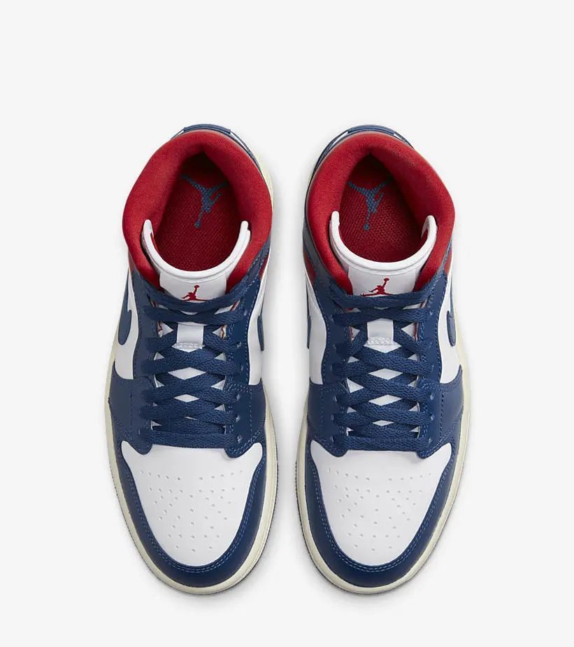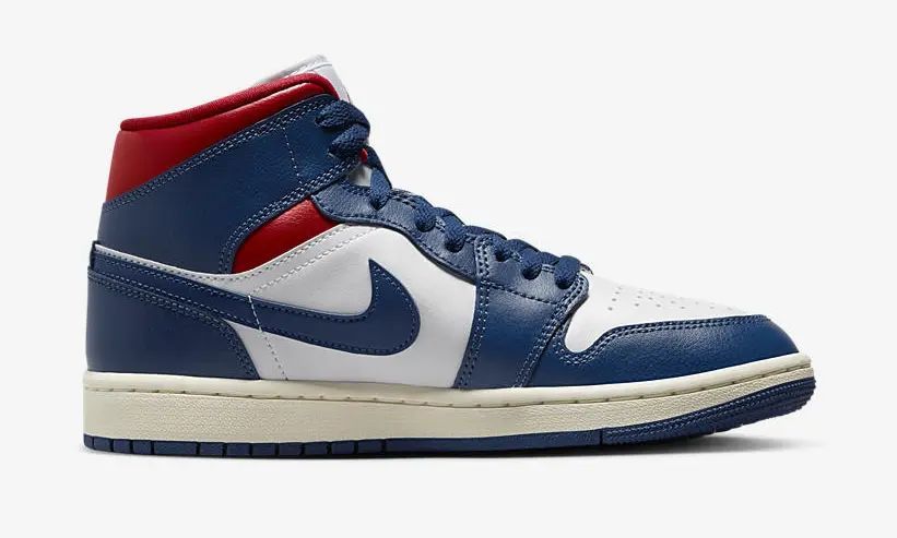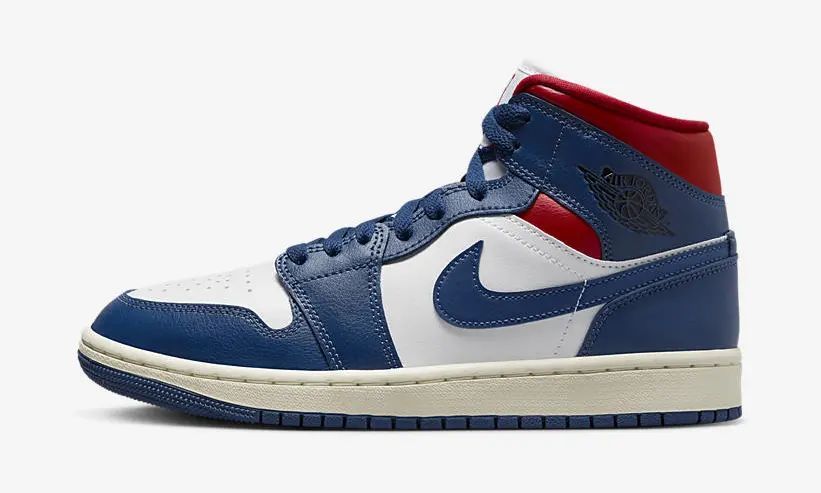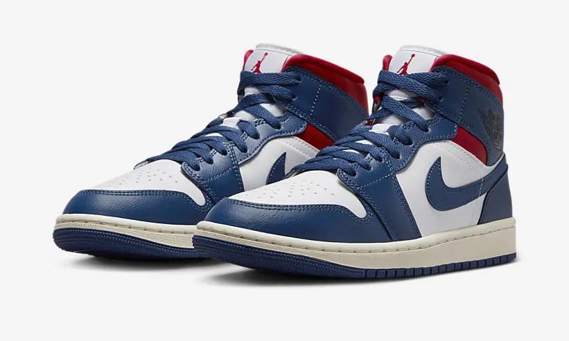 最近一双全新配色的 Air Jordan 1 Mid WMNS 公布了官图。整体以白色为底色,搭配鞋身框架覆盖的大面积海军蓝色,以及红色点缀,视觉效果十分出众。据悉这双全新的 Air Jordan 1 Mid WMN 会在 2023 年正式发售,具体发售信息目前未知。