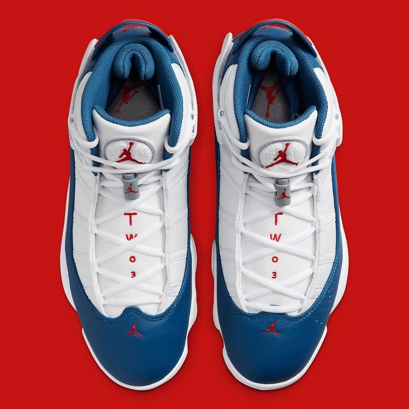 最近一双全新配色的 Jordan 6 Rings 公布了官图。这双鞋融合了 Air Jordan 13 鞋底、Air Jordan 11 鞋型、Air Jordan 6 后跟,以及 Air Jordan 8 的绑带设计。配色方面采用大面积午夜蓝色配合红色点缀,视觉效果十分出众。据悉这双全新的 Jordan 6 Rings 将于 2023 年发售,具体发售信息目前未知。