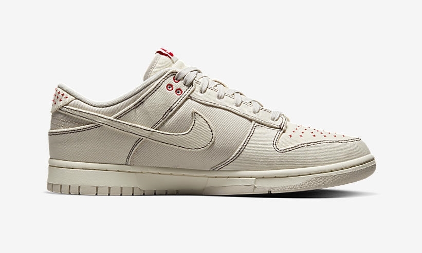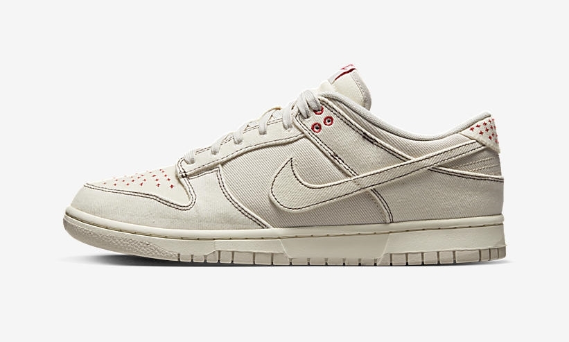 最近一双全新配色的 Nike Dunk Low “Denim”公布了官图。整双鞋采用米白色为主调,搭配红色妆点,鞋身采用丹宁面料包裹,鞋头孔洞与后跟 Logo 都改为了红色十字缝线,视觉效果十分出众。据悉这双全新的 Nike Dunk Low “Denim” 暂时未公布具体发售信息。
