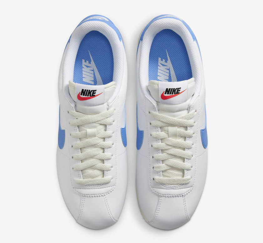 最近一双全新配色的 Nike Cortez “University Blue”公布了官图。整双鞋采用白色为基础,天蓝色点缀,鞋面采用光滑皮革材质打造,视觉效果十分出众。据悉这双全新的 Nike Cortez “University Blue” 将于今年发售,发售价格为 100 美元。