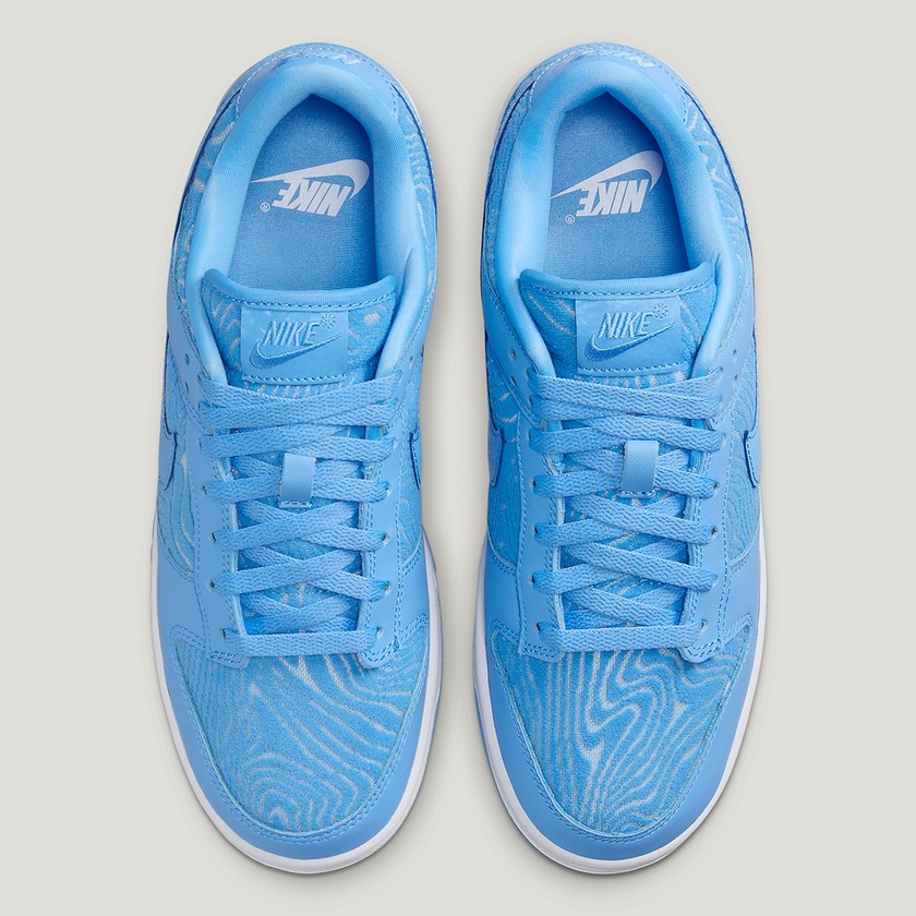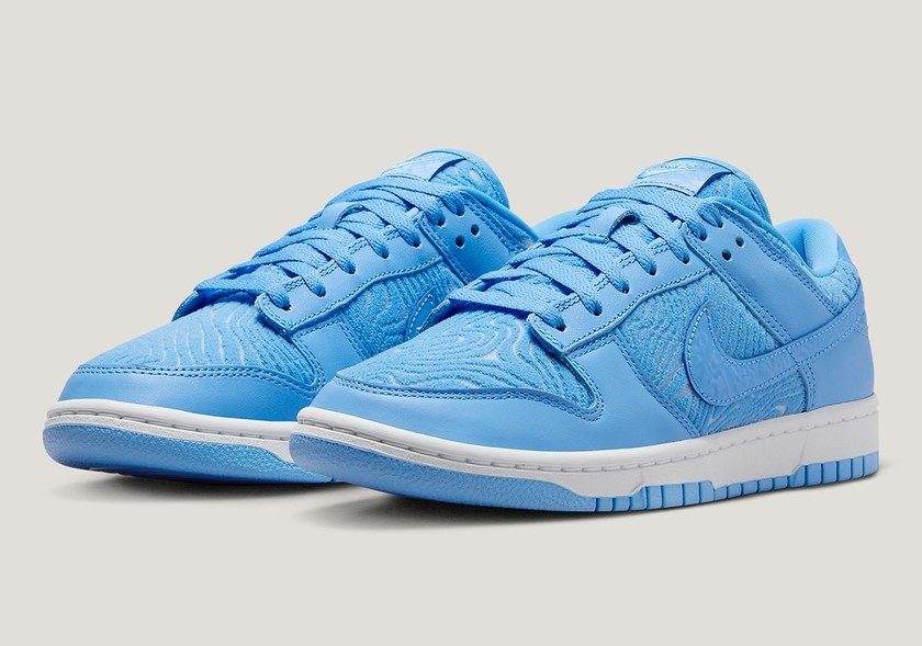 最近一双全新配色的 Nike Dunk Low 公布了官图。整双鞋采用皮革搭配毛圈布材质包裹,大面积的蓝色搭配鞋舌标签、鞋身 Swoosh 以及鞋后跟的大理石花纹点缀,视觉效果十分出众。据悉这双全新的 Nike Dunk Low 将于近期发售。