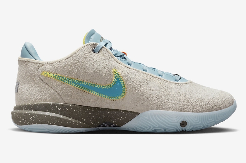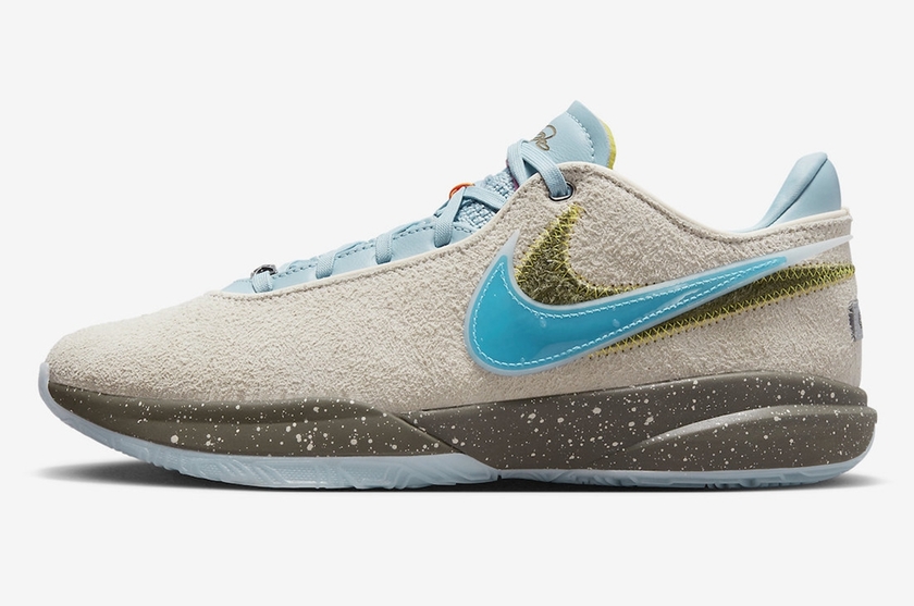 最近一双全新的 UNKNWN x Nike LeBron 20 “Message in a Bottle”公布了官图。鞋面材质采用了长绒麂皮,整体配色选择大地色系为主,加上冰蓝色的细节点缀,鞋侧双层 Swoosh 和外底都具有夜光效果,视觉效果十分出众。据悉这双全新的 UNKNWN x Nike LeBron 20 “Message in a Bottle” 将于 6 月 22 日发售,发售价格为 210 美元。