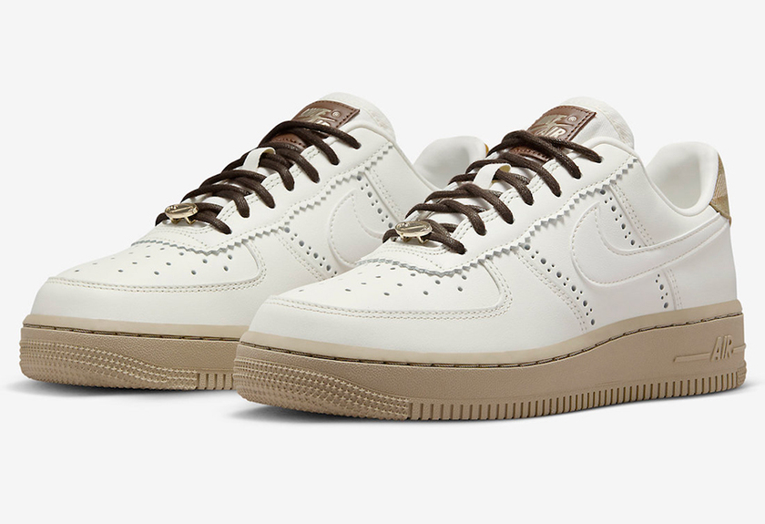 最近一双全新配色的 Nike Air Force 1 Low 公布了官图。整双鞋采用大面积的白色为主调,搭配鞋底、鞋舌及鞋带的棕色,后跟位置还点缀两种不同造型格纹面料,视觉效果十分出众。据悉这双全新配色的 Nike Air Force 1 Low 确定将在今年正式发售。
