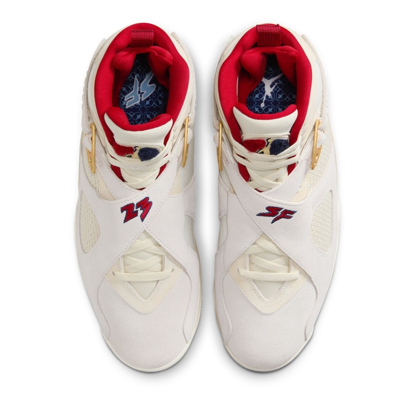 最近一双全新配色的 SoleFly x Air Jordan 8 “Mi Casa Es Su Casa”公布了官图。整双鞋采用白、金、红三色的组合,鞋身材质以麂皮和网眼织物包裹,金色的绑带扣和鞋舌刺绣,视觉效果十分出众。据悉这双全新的 SoleFly x Air Jordan 8 “Mi Casa Es Su Casa” 已经正式发售,发售价格为人民币 1699 元。