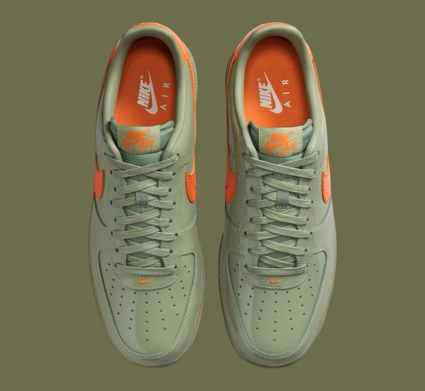 最近一双全新配色的 Nike Air Force 1 Low Premium “Oil Green”公布了官图。整双鞋采用军绿色和亮橙色搭配,配合漆皮鞋面闪亮的光泽,视觉效果十分出众。据悉这双全新的 Nike Air Force 1 Low Premium “Oil Green”会在今年秋季正式发售,发售价格为 135 美元。