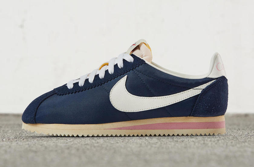 NIKEiD与Olivia Kim(Nordstrom创意项目的副总裁)合作,打造了一款非常独特且限量的Nike Cortez Premium iD设计。该款设计灵感来源于Kim最喜欢的——诞生于70年代的海军蓝配色Cortez,所以鞋面保留了该配色,并在中底加入了Baby粉细节点缀,意在营造一种非常复古和自然的感觉。泛黄的中底也非常具有岁月感。目前这款由 Olivia Kim打造的Nike Cortez Premium iD将于6月17日在Nordstrom商店上架,随后在6月19日上架Nike.com。