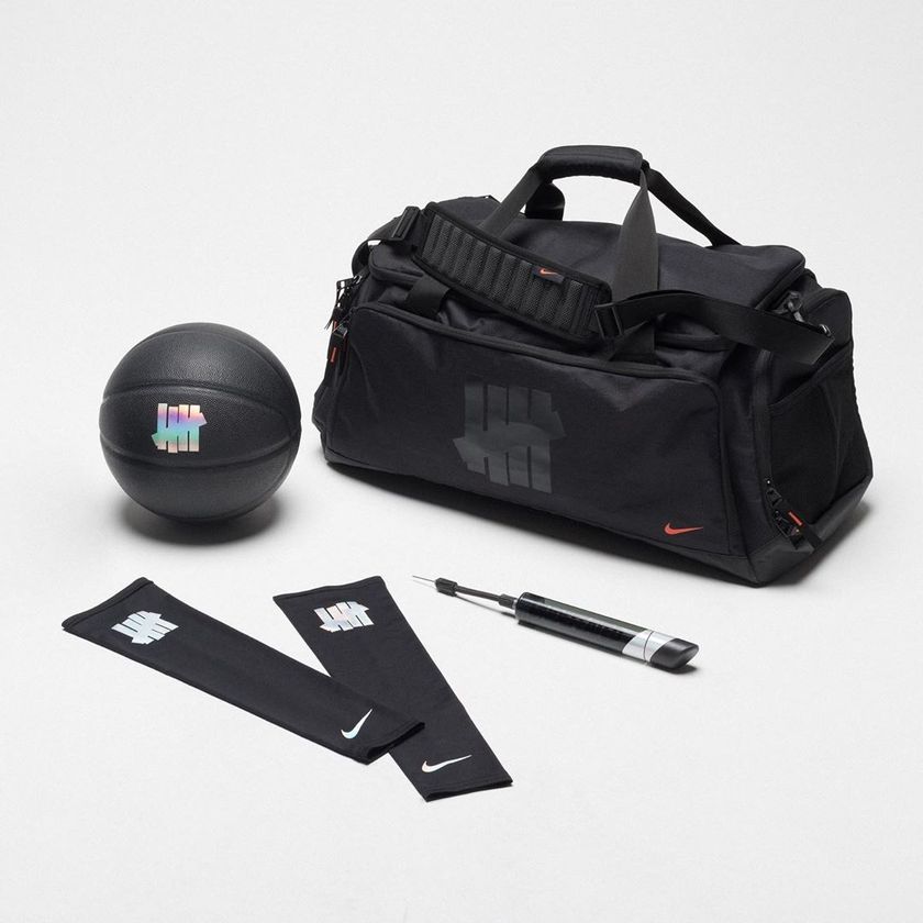 这次的单品包括运动旅行包、联名护臂、打气筒以及一款专属篮球。低调又酷酷的黑色作为该系列主色调,以镭射设计呈现的 UNDEFEATED logo 和 Nike Swoosh 点缀在单品上,彰显了联名身份。