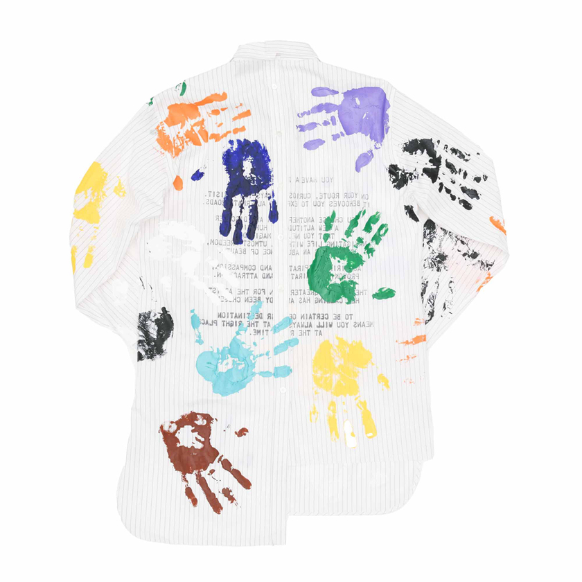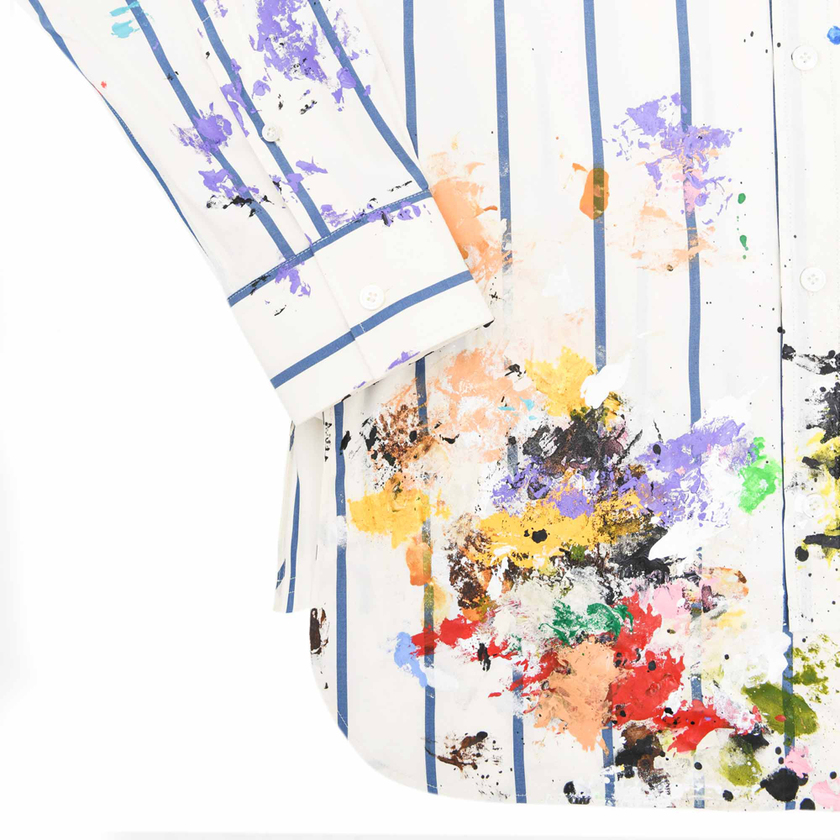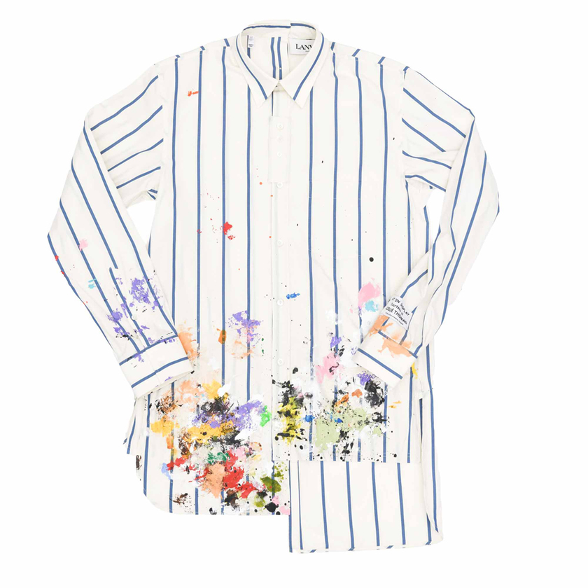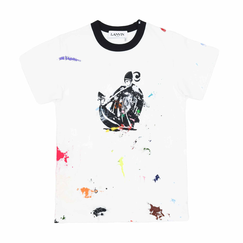 系列中不少单品是对 LANVIN 创意总监 Bruno Sialelli 的标杆之作进行了重塑,比如“母与女”印花 T 恤、斜裁拼接牛仔裤和不对称条纹衬衫等。