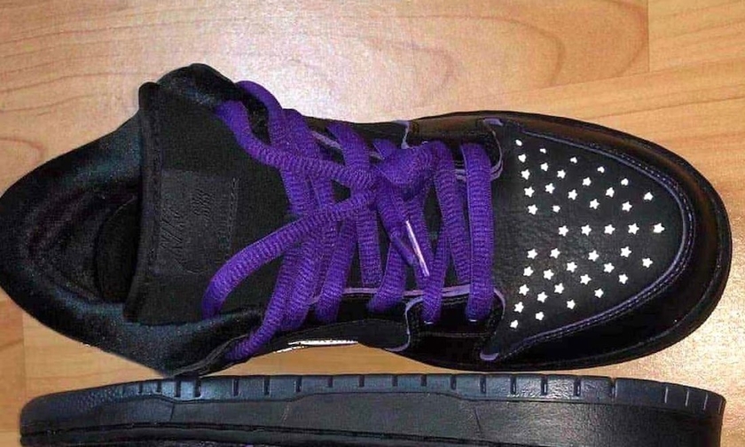鞋面“星星”、砖块等设计注入,带来独特视觉效果。Swoosh 部分以及鞋头星星注入了 3M 反光,吸睛度不俗。另外,鞋款的鞋带以紫色点缀,气质更为百搭潮酷。
