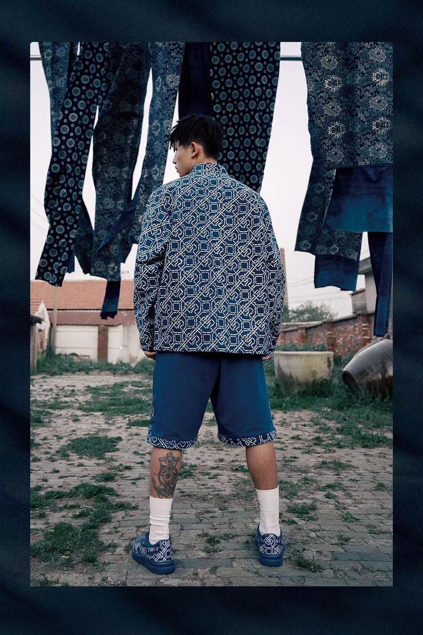 其中最受关注的当然还是鞋款,采用了 937 Deluxe Low 为蓝本塑造,蓝染色调主打,搭配极具民族风的白色花纹,视觉效果古朴典雅又不失潮流韵味。